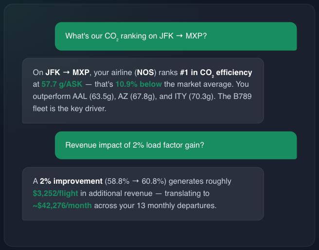 Your fuel burn reports are solid. Your cost tracking is tight. But when it comes to the airline operating the same route with a newer airframe, or the competitor undercutting your CASK by 6%, you’re working in the dark. Every fleet decision, every CI adjustment, every sustainability claim you make is based on half the picture.